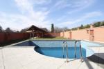 A kertben hangulatos kerti kiülő és egy nagy méretű medence található, amely kiváló helyszín családi és baráti összejövetelekhez. Az ingatlant magas, falazott kerítés veszi körül, amely biztonságot és privát szférát biztosít. A ház kamera rendszerrel és riasztóval felszerelt.
