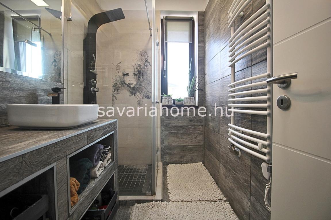 tágas, világos nappali, 4 különálló szoba, 2 elegáns fürdőszoba, hangulatos és tökéletesen kitalált konyha-étkező, háztartási helyiség és külön spejz biztosítja a család minden tagjának ideális életteret.